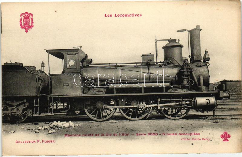 Les Locomotives, Machine mixte de la Cie de l'Etat, Serie 3000, 6... https://www.darabanth.com/hu/271-Gyorsarveres/271.0/Kepeslapok/Vonat~200098/Les-Locomotives-Machine-mixte-de-la-Cie-de-lEtat-Serie-3000-6-roues-aecouplees-French-locomot~II1353721
