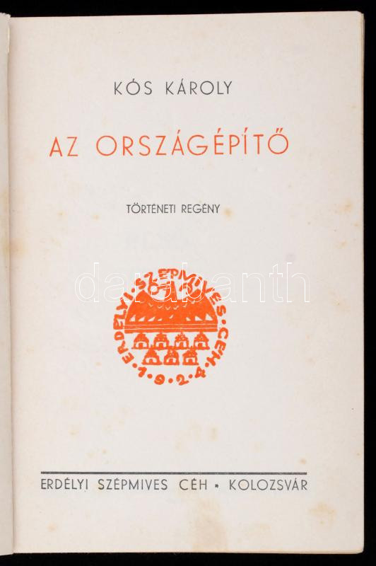 Kós Károly: Az országépítő. Kolozsvár, 1934, Erdélyi Szépmíves Céh. Ki... https://www.darabanth.com/hu/271-Gyorsarveres/271.0/Konyvek/Konyvek-Egyeb-ritkasagok~46/Kos-Karoly-Az-orszagepito-Kolozsvar-1934-Erdelyi-Szepmives-Ceh-Kiadoi-egeszvaszon~II1285116