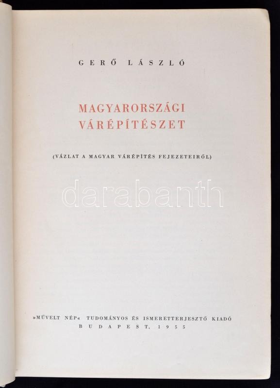 Gerő László: Magyarországi Várépítészet(Vázlat a magyar várépítés fejezeteiről). Bp., 1955, Művelt Nép Tudományos és Ismeretterjesztő Kiadó. Kiadói félvászon kötés, kissé kopottas állapotban.
