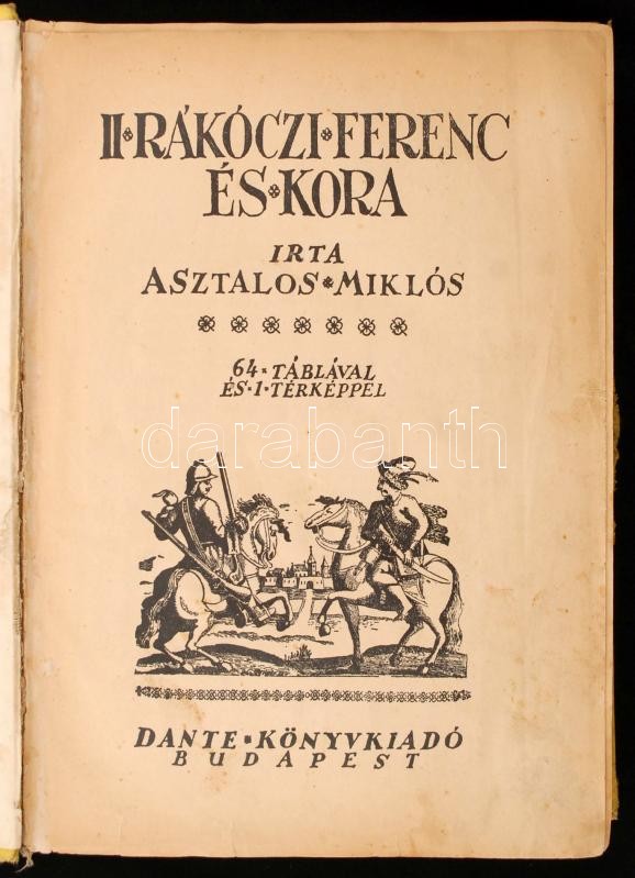 Asztalos Miklós: II. Rákóczi Ferenc és kora. Budapest, 1934, Dante Könyvkiadó, 492 p. Kiadói egészvászon.