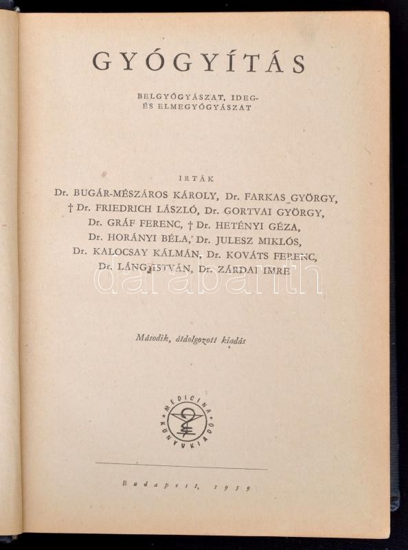 Id. Issekutz Béla (szerk.): Gyógyszertan és gyógyítás 1-3. 1. köt. (Bupest., 1959, Medicina, hatodik, teljesen átdolg. kiadás); 2. köt. (Budapest, 1959, Medicina Könyvkiadó, második, átdolgozott kiadás); 3. köt. (Budapest., 1960, Medicina, második, bővített átdolgozott kiadás). Kissé kopott vászonkötésben, 904+872+928 p.