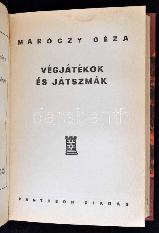 Maróczy Géza: Sakk I-III. A modern sakk vezérkönyve./A haladó sakkozó vezérkönyve./Végjátékok és játszmák. Budapest, Pantheon Kiadás. Második, bővített kiadás. Könyvkötői félvászon kötés, 368 p. A lapszélek foltosak. A könyvben ceruzával jegyzet, beírás.