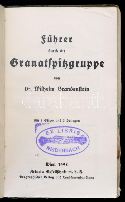 Brandenstein, Wilhelm: Führer durch die Granatspitzgruppe. Wien, 1926, Artaria. Átnézeti képpel, térképmelléklettel. Kicsit kopott félvászonkötésben, jó állapotban.