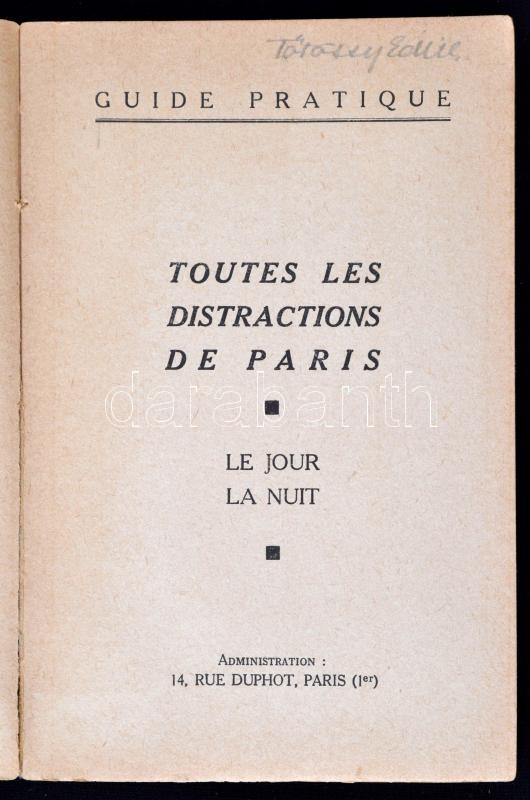 Guide Pratique Toutes Les Distractions De Paris. La Jour. La Nuit. Paris, é.n., Imp. Commerciale, 190 p.