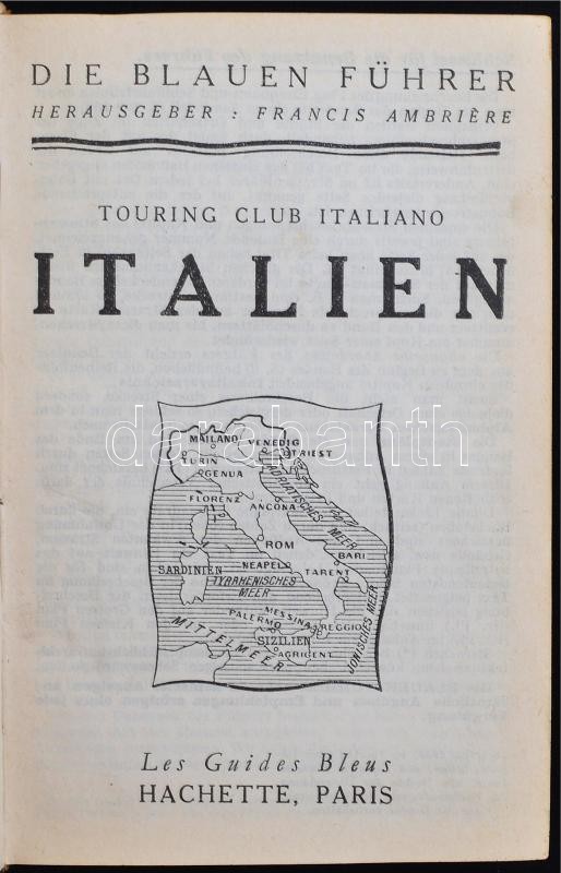 Touring Club Italiano. Italien. De Blauen Führer. Herausgeber: Francis Ambriére. Paris, 1955 Les Guides Bleus Hachette. Kiadói egészvászon-kötésben, számos térképpel.