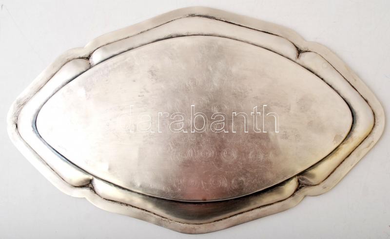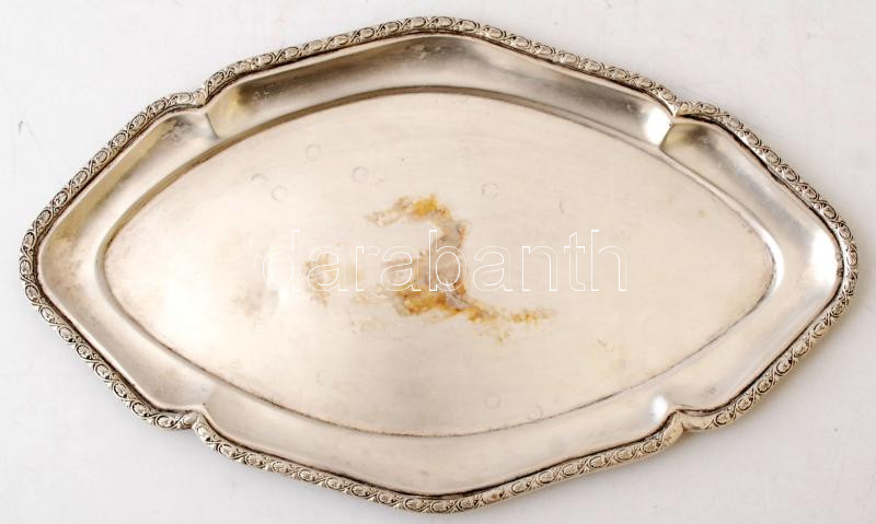 Leírás: Ezüst (Ag.) mandula formájú tálca, jelzett, 28×17 cm, nettó 192 g