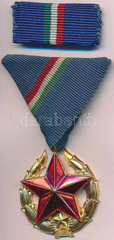 Leírás: 1951. "Közbiztonsági Érem" arany fokozata a rendőrség tagjai részére, aranyozott kitüntetés mellszalagon, szalagsávval T:2