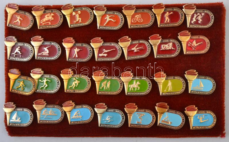 Leírás: Szovjetunió 1980. "Moszkvai Olimpia" 28xklf sportágakat ábrázoló zománcozott, aranyozott fém jelvény T:2