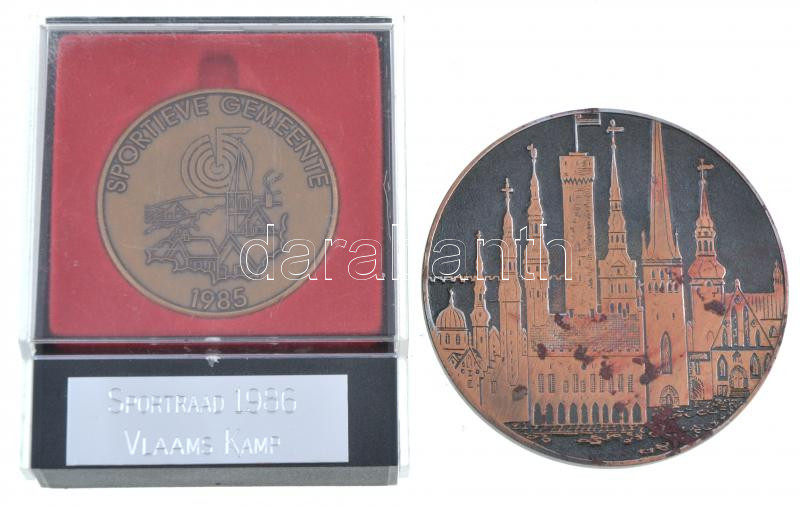 Estonia 1970. "Tallinn anno 1154" Br commemorative plaque in original case (78mm), dirty + Netherlands 1986. "Sport Community 1985 / Flemish Community" Br commemorative medallion in original case (50mm) C:VF,UNC