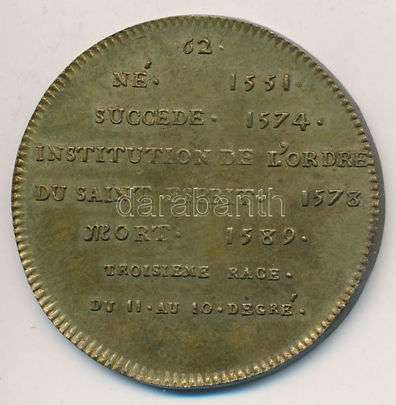 Franciaország ~1900. "III. Henrik" Br emlékérem "Francia Királyok sorozat" (9,6g/32mm) T:2