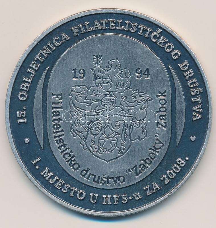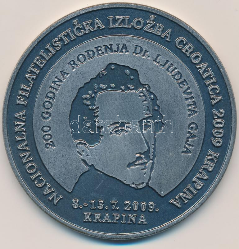 Horvátország 2009. "Horvát Nemzeti Bélyegkiállítás Krapina 2009 / Philatériai Társaság 15. évfordulója" horvát nyelvű, ezüstözött fém emlékérem, eredeti tokban (60mm) T:2