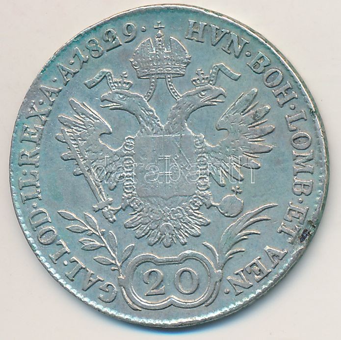 Austr... https://www.darabanth.com/hu/271-Gyorsarveres/271.0/Numizmatika/Kulfoldi-fem-es-ezustpenzek~300013/Ausztria-1829A-20kr-Ag-I-Ferenc-6-50g-T2-2-ph--Austria-1829A-20-Kreuzer-Ag-Franz-I-6-50g~II1374055