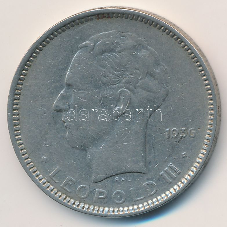 Belgium 193... https://www.darabanth.com/hu/271-Gyorsarveres/271.0/Numizmatika/Kulfoldi-fem-es-ezustpenzek~300013/Belgium-1936-5F-Ni-III-Lipot-A-pozicio-T2---Belgium-1936-5-Francs-Ni-Leopold-III-position~II1368608