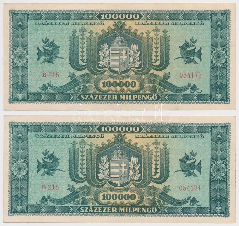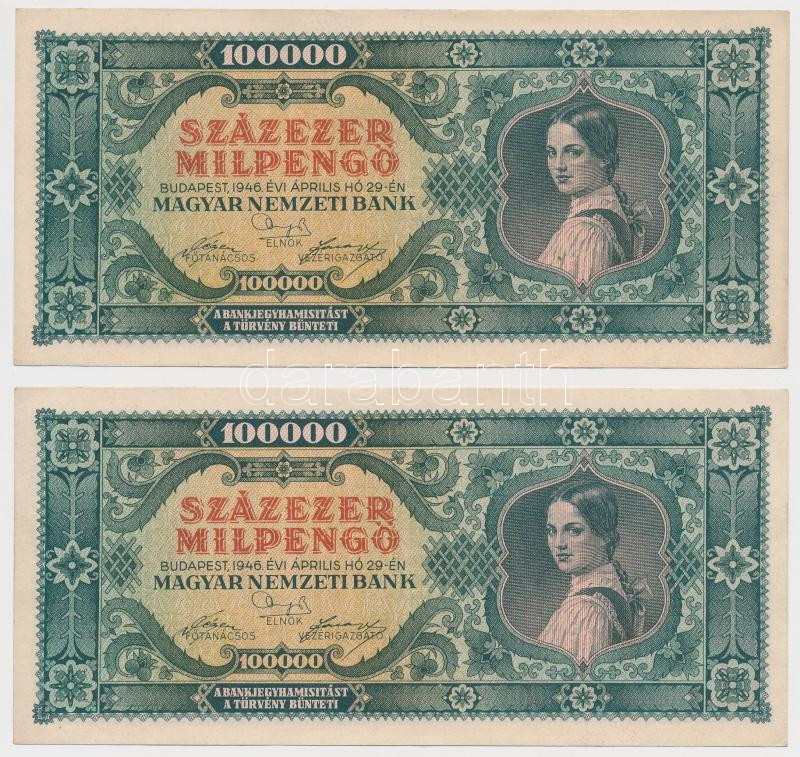 Adamo P30 https://www.darabanth.com/hu/271-Gyorsarveres/271.0/Numizmatika/Magyar-bankjegyek~300007/1946-100000MP-2x-sorszamkovetok-TII---Adamo-P30~II1369611