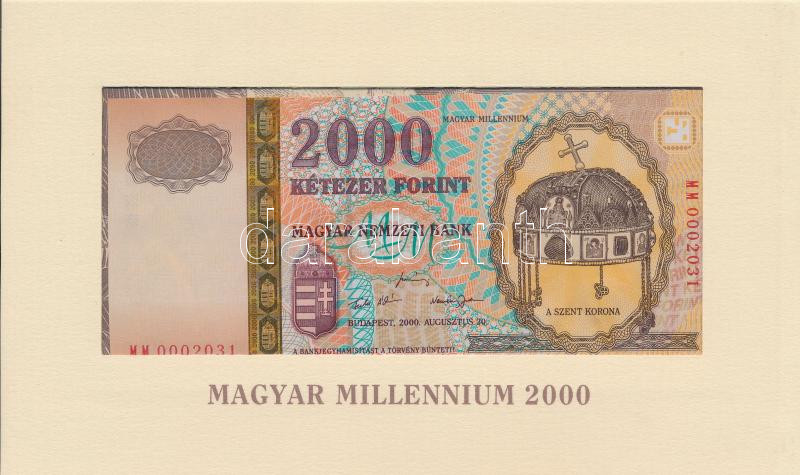 2000. 2000Ft "Millennium" eredeti bontatlan csomagolásban T:... https://www.darabanth.com/hu/271-Gyorsarveres/271.0/Numizmatika/Magyar-bankjegyek~300007/2000-2000Ft-Millennium-eredeti-bontatlan-csomagolasban-TI~II1377940