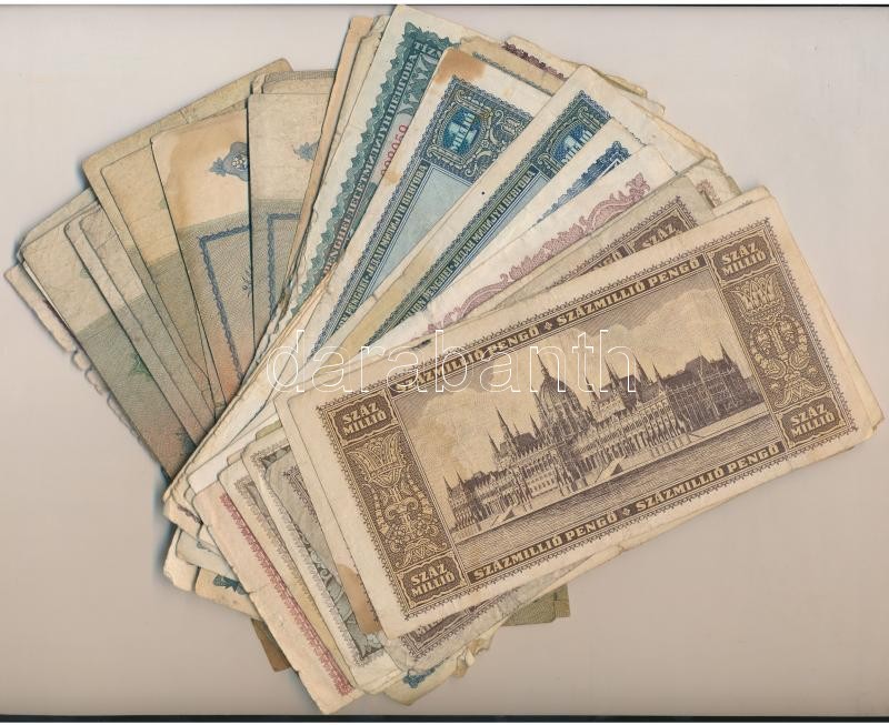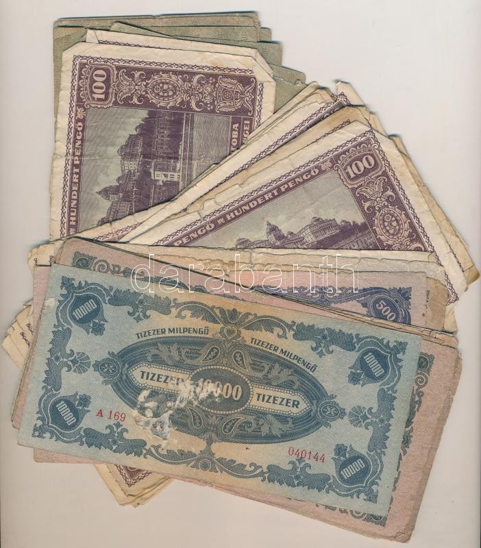 Leírás: Vegyes magyar pengő tétel 5P-100.000BP + 1993. 100Ft T:III,III- köztük ragasztottak is