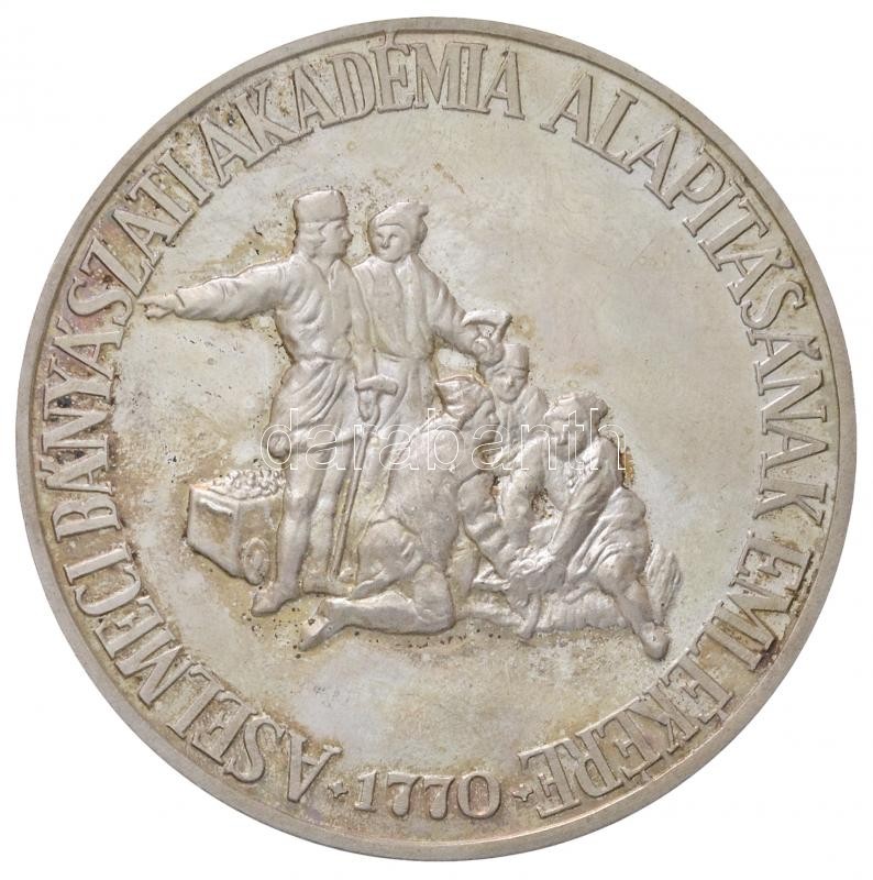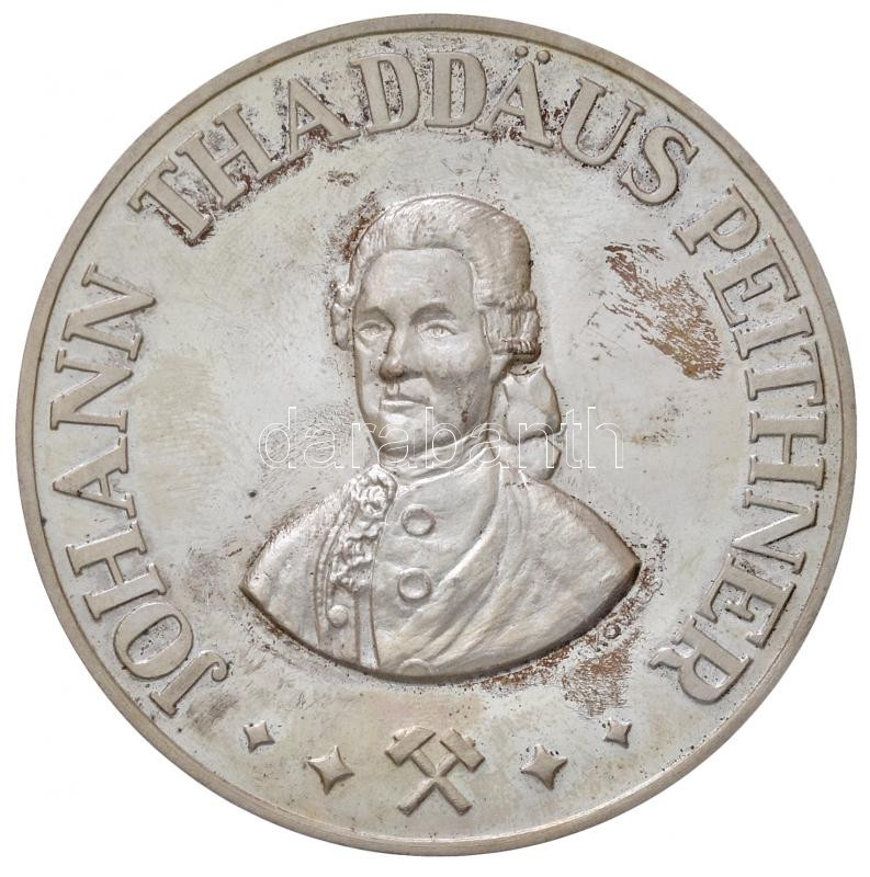 Kovács Dezső (1921-) 1970. "JOHANN THADDAUS PEITHNER / A SELMECI BÁNYÁSZATI AKADÉMIA ALAPÍTÁSÁNAK EMLÉKÉRE 1770" peremen jelzett Ag emlékérem (130,14g/0.935/69,5mm) T:2 oxidáció /