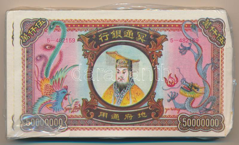 Kína DN Égetési pénz 150db 50.000.000 névértékben kissé sérült eredeti csomagolásban T:I China ND Hell banknotes in original, sligthly damaged packing 150x 50.000.000 C:UNC