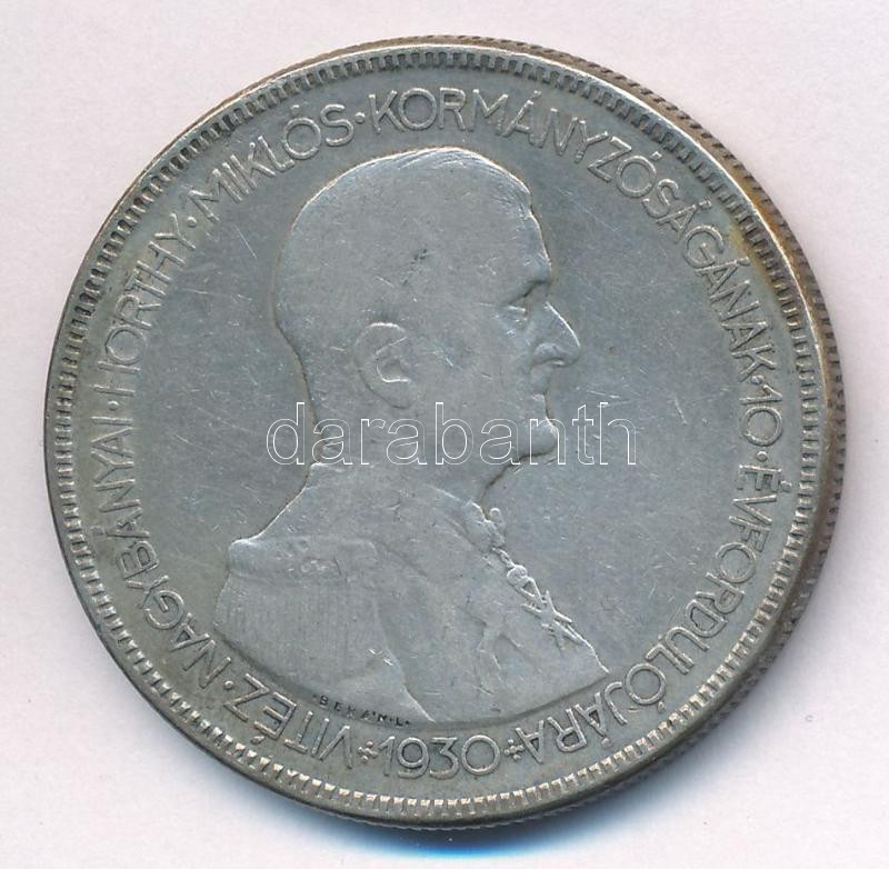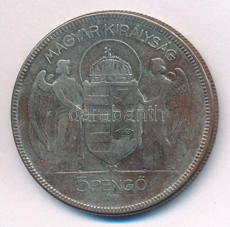 Leírás: 1930. 5P Ag "Horthy jobbra" T:2-,3 patina