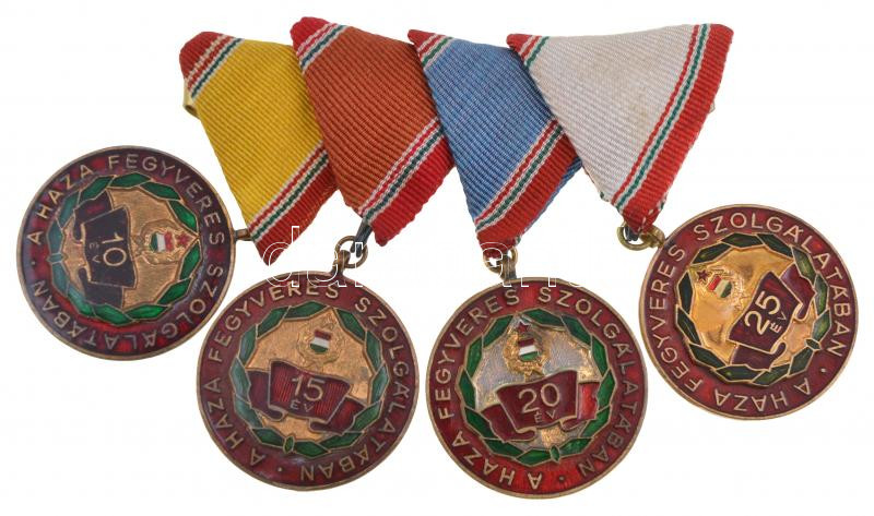 Leírás: 1970. "A Haza Fegyveres Szolgálatában" (4xklf) 10, 15, 20 és 25 év, zománcozott fém kitüntetések, mind mellszalagon, fém csatra tűzve T:2,2-
