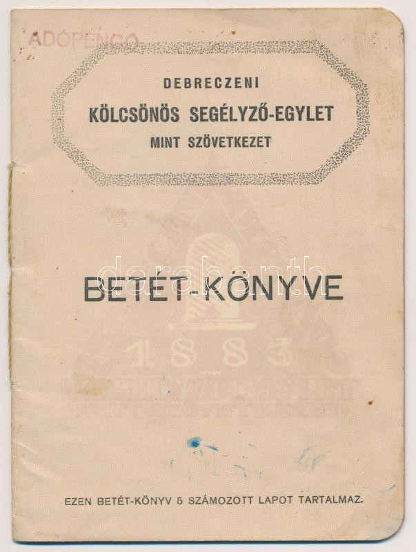 1942-1946. "Debreczeni Kölcsönös Segélyező-Egylet mint szövetkeze... https://www.darabanth.com/hu/271-Gyorsarveres/271.0/Numizmatika/Numizmatikaval-kapcsolatos-egyeb-tetelek~300003/1942-1946-Debreczeni-Kolcsonos-Segelyezo-Egylet-mint-szovetkezet-betetkonyve~II1370043