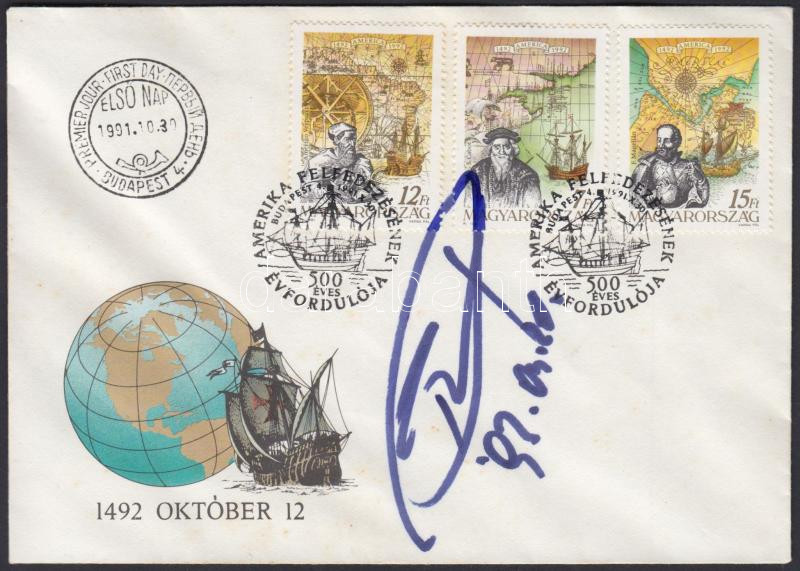 Leírás: Fa Nándor (1953- ) hajótervező, vitorlázó aláírása emlékborítékon