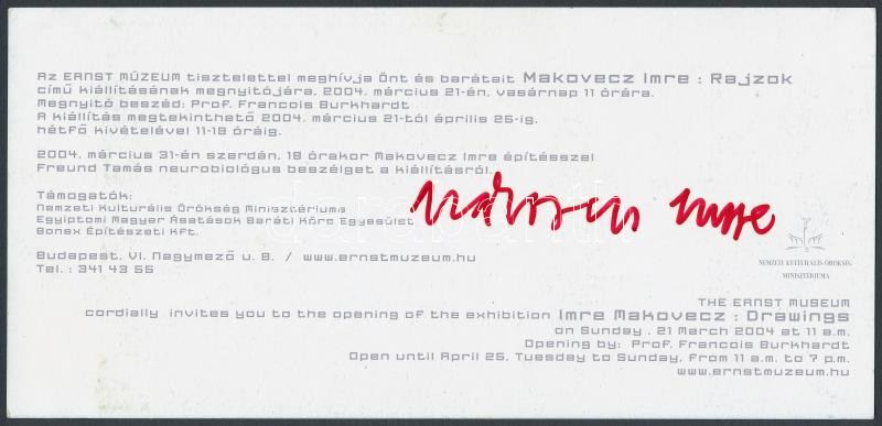 Leírás: Makovecz Imre (1935-2011) aláírása kiállítás meghívóján