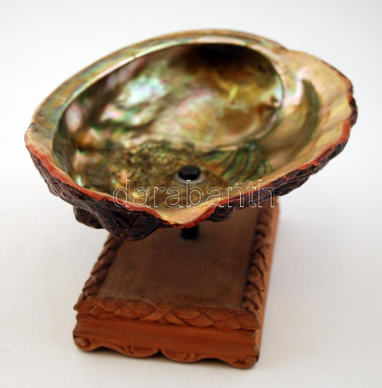 Tengeri kagyló kínáló, fa talapzaton, 18×15 cm https://www.darabanth.com/hu/272-Gyorsarveres/272.0/Festmeny-mutargy-papirregiseg-egyeb/Bolhapiac~13/Tengeri-kagylo-kinalo-fa-talapzaton-18C39715-cm~II1350645