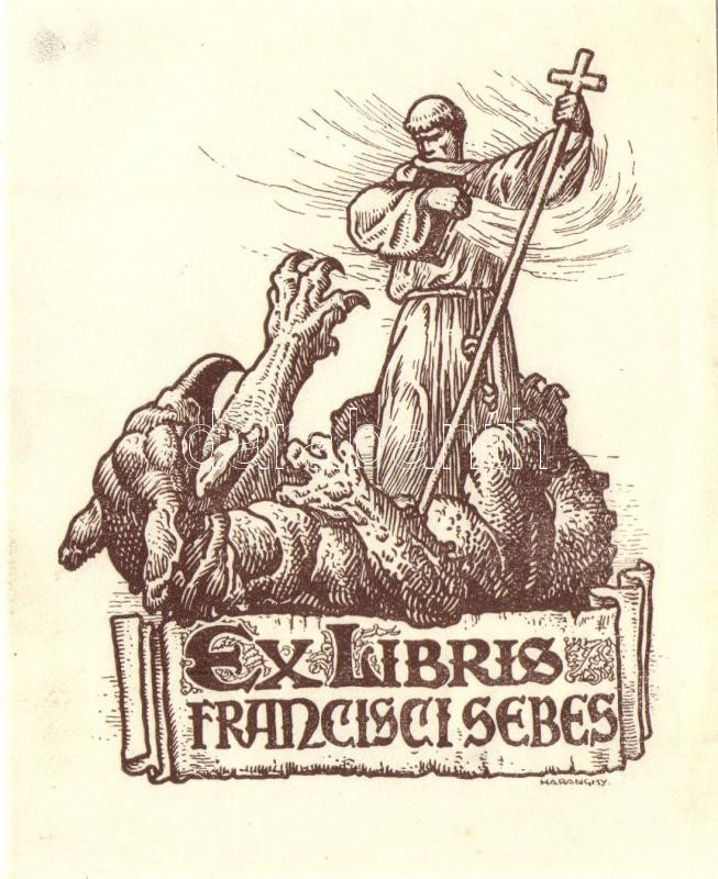 Haranghy Jenő (1894-1951): Ex libris Francisci Sebes, fametszet, papír, jelzett a dúcon, 11,5×9,5 cm + Haranghy Jenő (1894-1951): Pinterits Tibor könyve, klisé, papír, jelzett a klisén, 13×10,5 cm + Haranghy Jenő (1894-1951): Boldog ünnepeket kívánnak Pinterits Tiborék, alkalmi kisgrafika, fametszet, papír, jelzett a dúcon, 11,5×15 cm