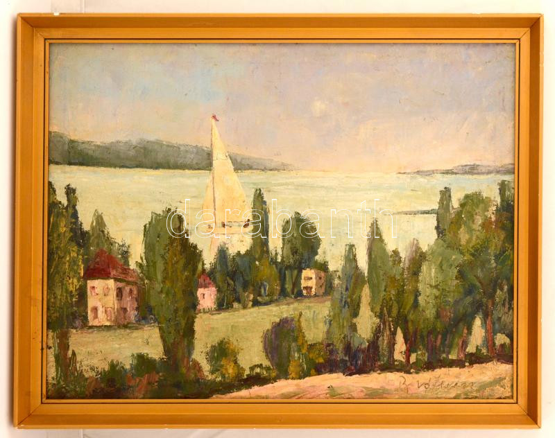 Leírás: Biró jelzéssel: Vitorlás a tavon. Olaj, vászon, keretben, 44×60 cm