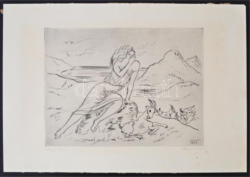 Leírás: Borsos Miklós (1906-1990): Rege. Rézkarc, karton, jelzett, 29×39 cm