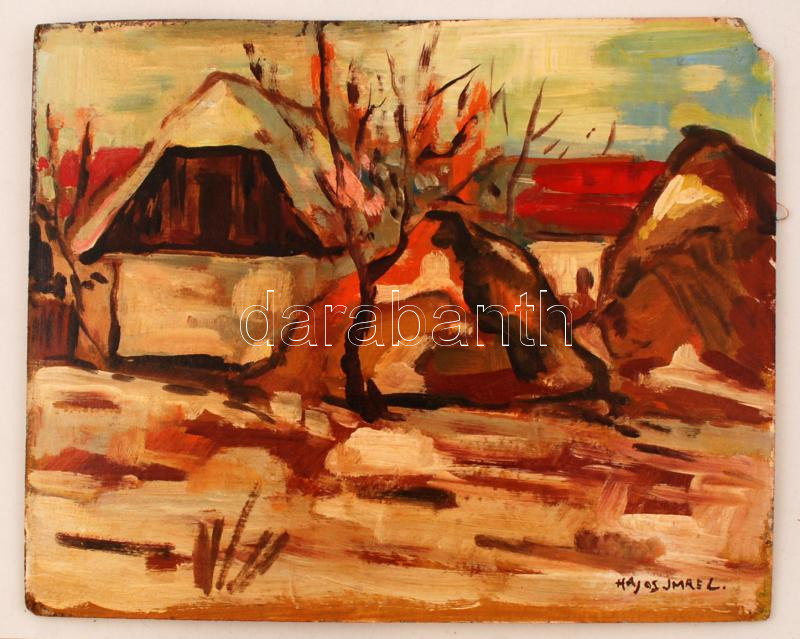 Hajós jelzéssel: Szénaboglya a kertben. Olaj, farost, sérült, 33×40 cm https://www.darabanth.com/hu/272-Gyorsarveres/272.0/Festmeny-mutargy-papirregiseg-egyeb/Festmenyek-es-grafikak~1/Hajos-jelzessel-Szenaboglya-a-kertben-Olaj-farost-serult-33C39740-cm~II1361238