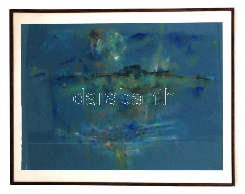 Leírás: Lisziák Elek (1939-2007): Holdvilágos Balaton. Pasztell, papír, jelzett, üvegezett keretben, 47×64 cm