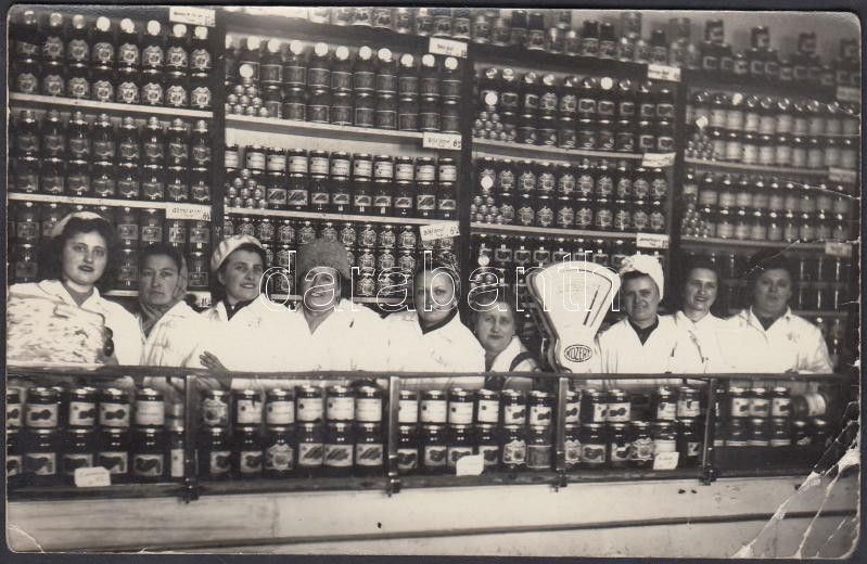 1955 KÖZÉRT, élelmiszerüzlet és dolgozói, sarkain törésnyomokkal, háto... https://www.darabanth.com/hu/272-Gyorsarveres/272.0/Festmeny-mutargy-papirregiseg-egyeb/Foto~27/1955-KOZERT-elelmiszeruzlet-es-dolgozoi-sarkain-toresnyomokkal-hatoldalon-feliratozva-9~II1383407