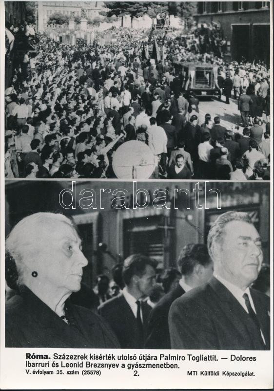 1964 Palmiro Togliatti temetése, MTI-fotó, feliratozva, 26,5×19 cm https://www.darabanth.com/hu/272-Gyorsarveres/272.0/Festmeny-mutargy-papirregiseg-egyeb/Foto~27/1964-Palmiro-Togliatti-temetese-MTI-foto-feliratozva-26-5C39719-cm~II1382111