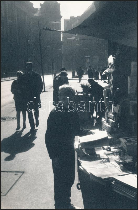 Leírás: Budapest, Újságos a Ferenciek terén, jelzetlen fotó, 22x15 cm