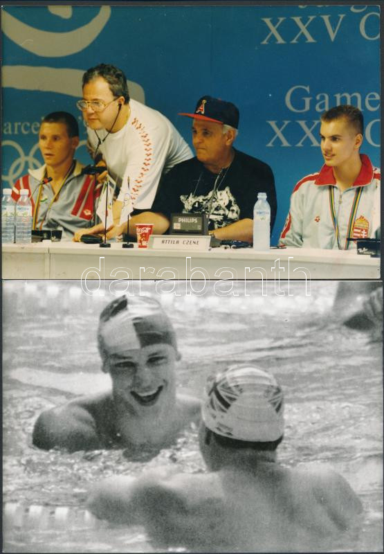 Leírás: Úszósporttal kapcsolatos fotók, Czene Attila, Darnyi Tamás, Rózsa Norbert, 2 db fotó, 13x18 cm