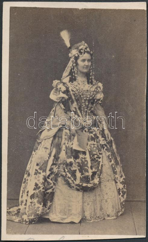 cca 1880-90 Bulyovszkyné Szilágyi Lilla (1833-1909) magyar színésznő, aki legnagyobb sikereit külföldön aratta; műfordító, keményhátú kabinetfotó L. Angerer műterméből, levágva, 10x6cm