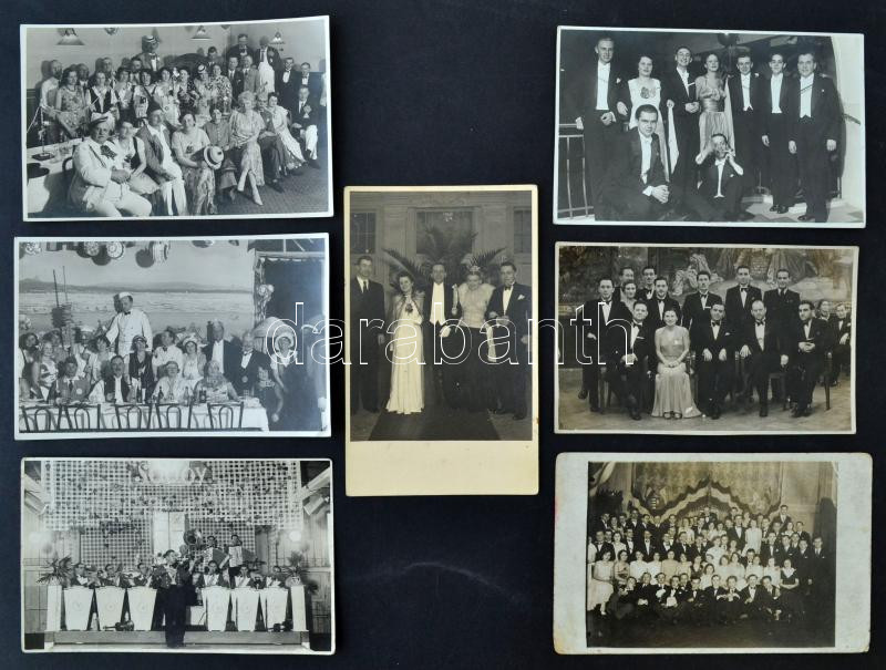 Leírás: cca 1930-40 Vegyes báli fotók, közte medikus bál, Familia bál, stb., 7db, különböző méretben és minőségben, 9x13cm