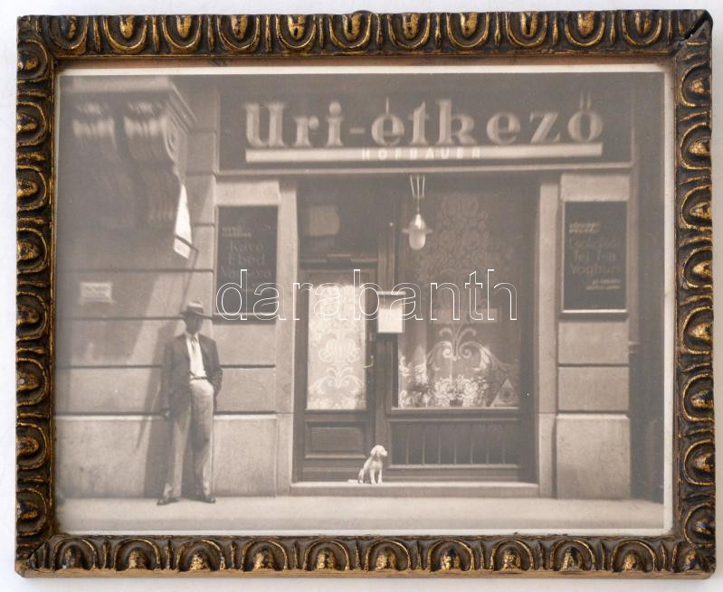 Leírás: cca 1930 Uri-étkező Hofbauer, József körút 34. (?), sérült képkeretben, 15x19 cm.