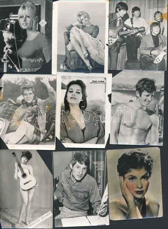 Leírás: cca 1960-70 Vegyes, külföldi előadóművészek fotói, 16db, különböző méretben és minőségben, cca 10x7cm