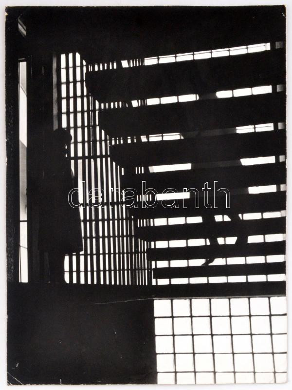 Leírás: cca 1966 Dr. Kosztolányi Gyula: Lépcsőházban, feliratozott vintage fotóművészeti alkotás, kasírozva, 40x28 cm