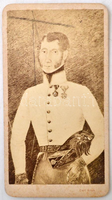 cca 1860 Azonosítatlan vezérőrnagy képe, fénynyomat, hátoldalon felira... https://www.darabanth.com/hu/272-Gyorsarveres/272.0/Festmeny-mutargy-papirregiseg-egyeb/Militaria~20/cca-1860-Azonositatlan-vezerornagy-kepe-fenynyomat-hatoldalon-feliratozva-10x6-cm~II1388317