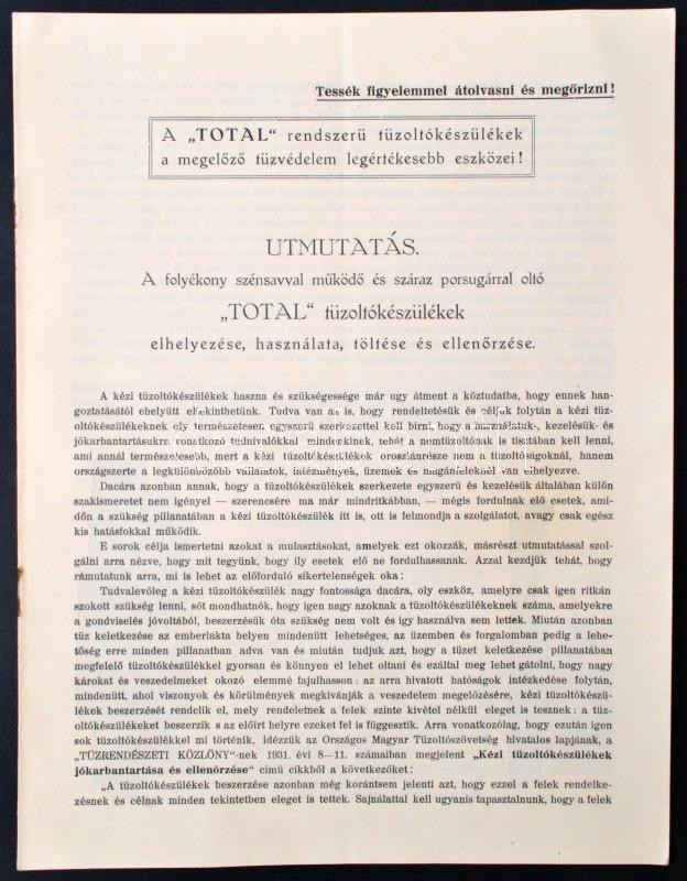 cca 1930-40 Utmutatás "Total" tűzoltókészülék elhelyezése, használata,... https://www.darabanth.com/hu/272-Gyorsarveres/272.0/Festmeny-mutargy-papirregiseg-egyeb/Nyomtatvanyok~47/cca-1930-40-Utmutatas-Total-tuzoltokeszulek-elhelyezese-hasznalata-toltese-es-elleno~II1388367