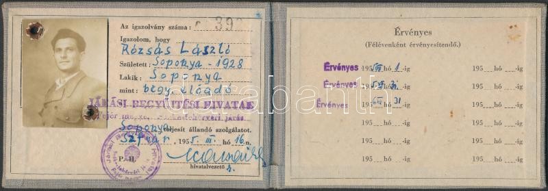 1955 Igazolvány, Járási Begyűjtési Hivatal, arcképes, 8x11cm https://www.darabanth.com/hu/272-Gyorsarveres/272.0/Festmeny-mutargy-papirregiseg-egyeb/Okmanyok~19/1955-Igazolvany-Jarasi-Begyujtesi-Hivatal-arckepes-8x11cm~II1345541