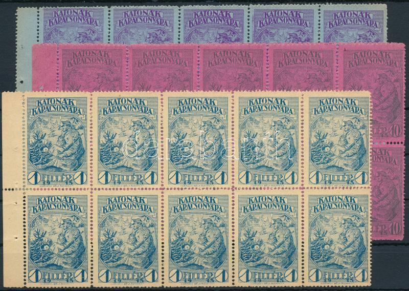 Leírás: 1915 I. világháborús katonák karácsonyára 3 klf segélybélyeg 10-es tömbökben