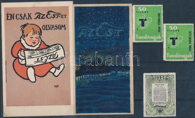 Leírás: Újságbélyegek: Az Est, Tündérujjak, Pressburger Zeitung 5 klf bélyeg