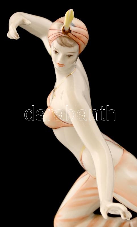 Leírás: Hollóházi táncosnő, kézzel festett, jelzett, apró kopásnyomokkal, m: 24,5 cm