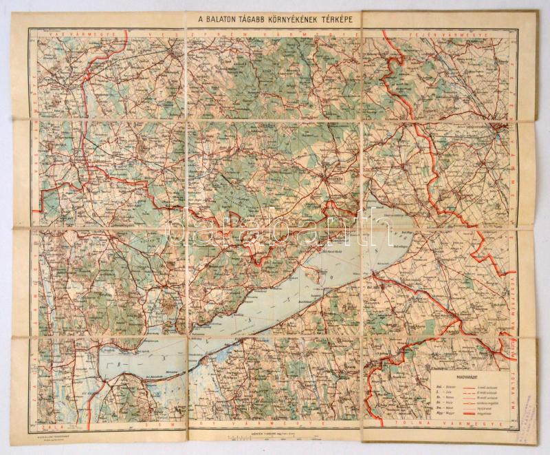 cca 1930 A Balaton tágabb környékének térképe, 1:200.000, M. Kir. Álla... https://www.darabanth.com/hu/272-Gyorsarveres/272.0/Festmeny-mutargy-papirregiseg-egyeb/Terkepek~22/cca-1930-A-Balaton-tagabb-kornyekenek-terkepe-1200000-M-Kir-Allami-Terkepeszet-Vas~II1386287