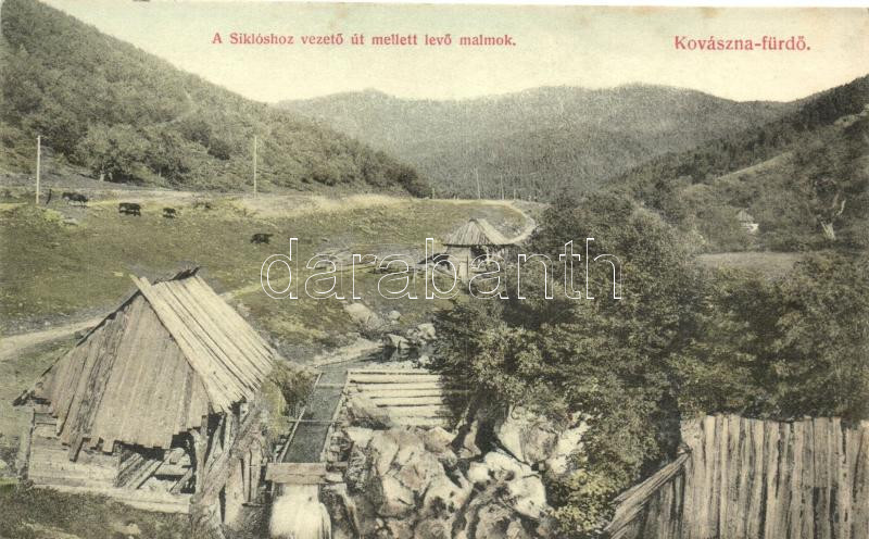 Kovászna-fürdő, Covasna; Siklóshoz vezető út mellett levő malmok / roa... https://www.darabanth.com/hu/272-Gyorsarveres/272.0/Kepeslapok/Erdely~400314/Kovaszna-furdo-Covasna-Sikloshoz-vezeto-ut-mellett-levo-malmok-road-mills-EK~II1386490